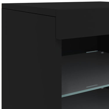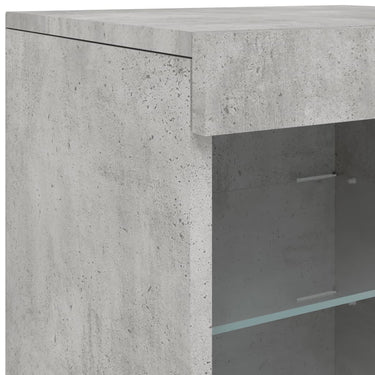 Dekoriere dein Zuhause mit diesem modernen Sideboard mit LED-Beleuchtung, das sich leicht mit Möbeln in jedem Stil kombinieren lässt. Langlebiges Material: Holzwerkstoff ist ein Material von außergewöhnlicher Qualität mit glatter Oberfläche, das sich durch Festigkeit, Stabilität und Feuchtigkeitsbeständigkeit auszeichnet.Reichlich Stauraum: Dieses Sideboard bietet viel Stauraum, damit du deine Zeitschriften, Bücher, Dekoartikel, Sammlerstücke und andere kleine Gegenstände gut geordnet und in Reichweite aufbewahren kannst.Präsentationsfunktion: Die robuste Oberplatte des Sideboards eignet sich ideal zum Ausstellen von Dekorationsgegenständen, Bilderrahmen, Topfpflanzen usw.Einstellbare LED-Beleuchtung: Dieser kleine Schrank ist mit RGB-LED-Leuchten ausgestattet. Über verschiedene Menüs kannst du die Lichtfarbe ändern und die Beleuchtung auf automatisch einstellen, um dein Zuhause farbenfroh und schön zu dekorieren. Achtung:Um ein Umkippen zu vermeiden, sollte dieses Produkt mit der mitgelieferten Wandhalterung gesichert werden. Gut zu wissen:Das Produkt verfügt über einen USB-Anschluss, für den eine zertifizierte 5V-USB-Stromquelle erforderlich ist (nicht im Lieferumfang enthalten).