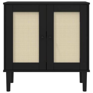 Sideboard SENJA Rattan-Optik Schwarz 80x35x80 cm Kiefernholz