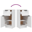 Mit seinem minimalistischen Stil erfüllt dieses Sideboard vielfältige Anforderungen und ist die ideale Ergänzung und Bereicherung für jeden Raum. Premium Material: Holzwerkstoff ist mit seiner glatten Oberfläche ein Material hoher Qualität, das sich durch Festigkeit, Stabilität und Feuchtigkeitsbeständigkeit auszeichnet.Viel Stauraum: Der Schrank verfügt über 2 Fächer und eine Schublade, die reichlich Platz bieten, um deine Bücher, Multimediageräte und andere Gegenstände in Reichweite aufzubewahren.Präsentation: Die Oberplatte des Schranks eignet sich ideal, um Dekoartikel wie Fotorahmen oder Topfpflanzen zur Schau zu stellen.Breite Anwendung: Der vielseitige Lagerschrank kann unterschiedliche Anforderungen erfüllen, da er auch als Nachttisch verwendet werden kann. Achtung:Um ein Umkippen zu vermeiden, sollte dieses Produkt mit der mitgelieferten Wandhalterung gesichert werden.