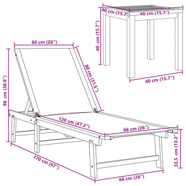 Sonnenliegen 2 Stk. mit Tisch Akazie Massivholz und Textilene