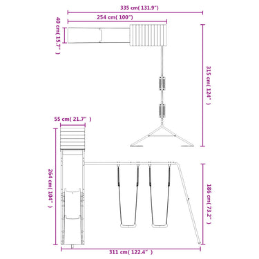 - Gesamtabmessungen: 315 x 335 x 264 cm (L x B x H)