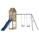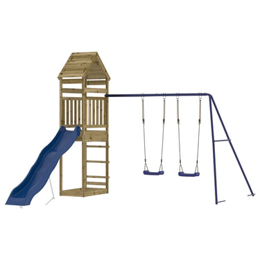 Möchtest du deinen Kindern ihren eigenen Spielplatz schenken? Dieser Spielplatz aus Holz ermöglicht fantasievolle Abenteuer im eigenen Garten! Kesseldruckimprägniertes Holz: Dieses Garten-Klettergerüst ist aus kesseldruckimprägniertem Kiefernholz gefertigt. Kiefer-Massivholz ist ein schönes Naturmaterial. Kiefernholz weist eine gerade Maserung auf und die Aststellen verleihen dem Holz seine charakteristische, rustikale Optik. Die Kesseldruckimprägnierung ist ein Konservierungsverfahren, das mit Hilfe von Autoklaven durchgeführt wird. Sie erhöht die Fäulnis- und Witterungsbeständigkeit des Holzes.Robuster und stabiler Rahmen: Der Spielgerät-Rahmen aus Holz sorgt für Robustheit und Sicherheit. Außerdem sorgt das A-förmige Gestell der Kinderschaukel für Stabilität.Spielzentrum: Der Spielturm verfügt über eine 90 cm hohe Plattform, eine Wellenrutsche, zwei Schaukeln sowie einen Sandkasten. So können deine Kleinen auch ihre Freunde zum Mitspielen einladen.Durchdachtes Design: Die umlaufenden Holzgeländer gewährleisten die Sicherheit der Kinder beim Spielen. Zudem spendet das Holzdach an heißen Sommertagen Schatten.Unendlicher Spielspaß: Dieses lustige Spielgerät ist die perfekte Möglichkeit für deine Kinder und ihre Freunde, sich zu beschäftigen, mehr Spaß miteinander zu haben und Erinnerungen zu schaffen! Achtung:Nur für den HausgebrauchFür den AußenbereichNicht geeignet für Kinder unter 3 JahrenEmpfohlenes Benutzeralter: 3-8 Jahre Hinweis:Das Produkt muss verankert werden, um die Kippgefahr zu verringern. Anker sind im Lieferumfang enthalten. Gut zu wissen:Um die Montage so einfach wie möglich zu machen, wird jedes Produkt mit einer Anleitung geliefert.