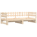 Dieses vielseitige Tagesbett aus Holz lässt sich als Bett in deinem Schlafzimmer einsetzen, kann aber auch als Sofa im Wohnzimmer dienen. Massives Kiefernholz: Massives Kiefernholz ist ein wunderschönes Naturmaterial. Kiefernholz weist eine gerade Maserung auf und die Aststellen verleihen dem Material seine charakteristische, rustikale Optik. Aus massivem Kiefernholz gefertigt, ist dieses Gästebett stabil und langlebig. Latten-Design: Der Lattenrost aus Holz sorgt für eine bessere Luftzirkulation, um die Matratze länger frisch zu halten, verbessert die Gewichtsverteilung und sorgt für Stabilität. Einfacher Gebrauch: Dieses Gästebett ermöglicht eine komfortable Nutzung, da es weder eine Ferderkernbox noch eine Basis erfordert. Stelle einfach die Matratze darüber und genieße einen erholsamen Schlaf oder eine komfortable Sitzposition! Ausziehbar: Dieses Tagesbett aus Holz kann tagsüber als Sofa und nachts als Bett verwendet werden, um Übernachtungsgästen einen gemütlichen Schlafplatz zu bieten und gleichzeitig Platz zu sparen. Gut zu wissen:Matratzen sind bei diesem Bett nicht im Lieferumfang enthalten. Wir bieten jedoch eine große Auswahl an Matratzen an. Du kannst in unserem Shop nach passenden Matratzen suchen.