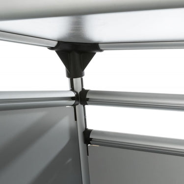 - Material: Aluminium, Hartfaserplatte und Kunststoff