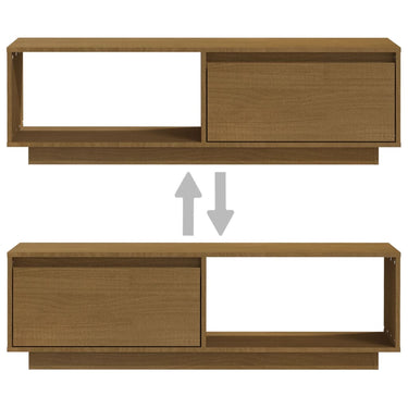 Bringe einen Hauch von Eleganz und Komfort in deine Inneneinrichtung mit diesem trendigen TV-Möbel! Aus massivem Kiefernholz gefertigt, ist der TV-Tisch robust, stabil und auf eine lange Lebensdauer ausgelegt. Mit seinen Fächern bietet dieser Schrank ausreichend Platz für Zeitschriften, Fernbedienungen, Bilderrahmen usw. Er sorgt mit seiner Ablagefläche für mehr Ordnung in jedem Wohnraum.
