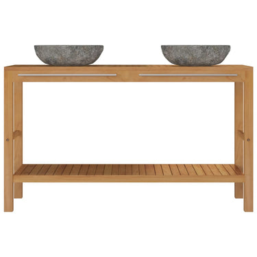 Waschtischunterschrank Teak Massiv mit Flussstein Waschbecken