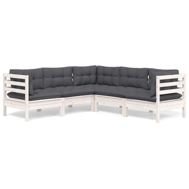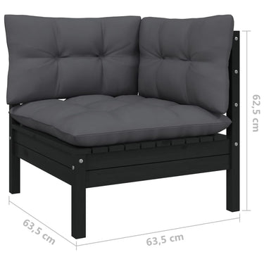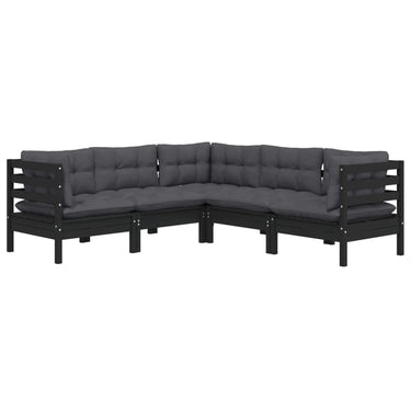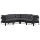5-tlg. Garten-Lounge-Set mit Kissen Schwarz Kiefer Massivholz