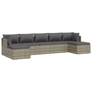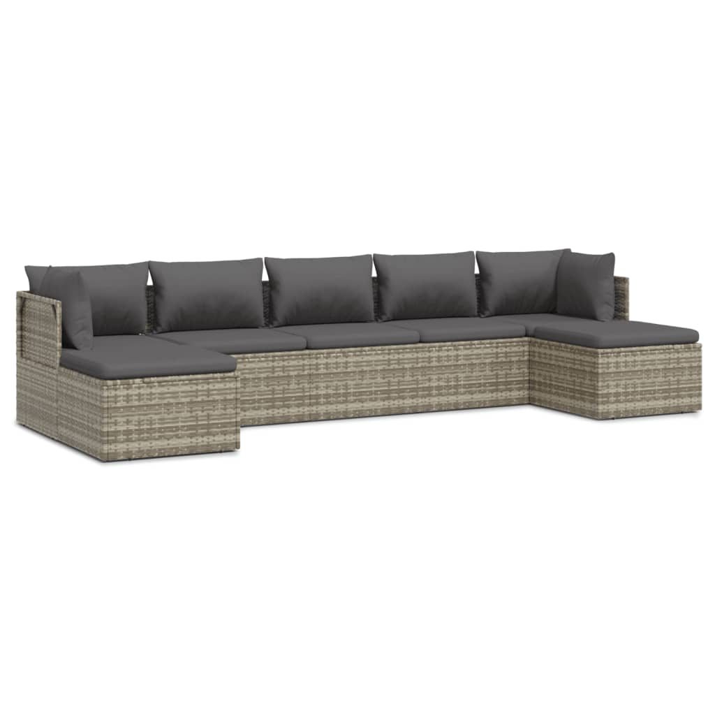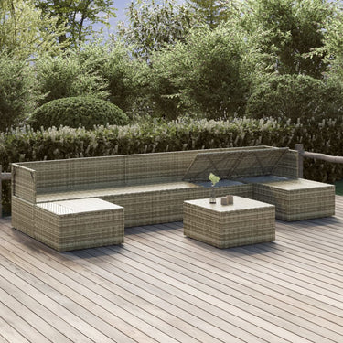 8-tlg. Garten-Lounge-Set mit Kissen Grau Poly Rattan