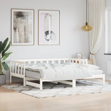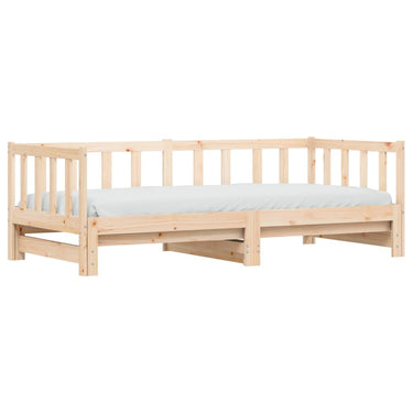 Dieses vielseitige ausziehbare Tagesbett aus Holz lässt sich als Bett in deinem Schlafzimmer einsetzen, kann aber auch als Sofa im Wohnzimmer dienen. Massives Kiefernholz: Massives Kiefernholz ist ein wunderschönes Naturmaterial. Kiefernholz weist eine gerade Maserung auf und die Aststellen verleihen dem Material seine charakteristische, rustikale Optik. Aus massivem Kiefernholz gefertigt, ist dieses Gästebett stabil und langlebig.Latten-Design: Der Lattenrost sorgt für eine bessere Luftzirkulation, damit die Matratze länger frisch bleibt, verbessert die Gewichtsverteilung und sorgt für Stabilität.Einfacher Gebrauch: Dieses Gästebett ermöglicht eine komfortable Nutzung, da es weder eine Ferderkernbox noch eine Basis erfordert. Stelle einfach die Matratze darüber und genieße einen erholsamen Schlaf oder eine komfortable Sitzposition!Ausziehbar: Dieses Tagesbett aus Holz kann tagsüber als Sofa und nachts als Bett verwendet werden, um Übernachtungsgästen einen gemütlichen Schlafplatz zu bieten und gleichzeitig Platz zu sparen. Gut zu wissen:Matratzen sind bei diesem Bett nicht im Lieferumfang enthalten. Wir bieten jedoch eine große Auswahl an Matratzen an. Du kannst in unserem Shop nach passenden Matratzen suchen.