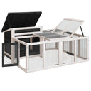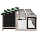 Dieser Kaninchenstall verfügt über ein geräumiges Freilaufgehege und einen Schlafbereich und bietet dadurch deinen pelzigen Freunden wie Kaninchen, Meerschweinchen, kleinen Enten und anderen Kleintieren eine sichere und gemütliche Umgebung zum Spielen und Ausruhen. Robuste Konstruktion: Dieser Kaninchenstall ist aus massivem Kiefernholz gefertigt und besitzt dadurch eine robuste Konstruktion. Kiefernholz ist ein wunderschönes Naturmaterial. Es weist eine geradlinige Maserung auf und die Aststellen verleihen dem Material seine charakteristische, rustikale Optik. Mit seinem wasserfesten Dach eignet sich der Kaninchenkäfig perfekt für den Außenbereich.Wände aus Maschendraht: Der Kaninchenkäfig ist mit Wänden aus Maschendraht ausgestattet, die unerwartete Unfälle verhindern. So kannst du deine Kaninchen täglich beobachten, während die Kaninchen ein breites Sichtfeld und ausreichend frische Luft genießen.Für mehrere Aktivitäten geeignet: Mit einem Nistkasten und einem geräumigen Freilaufgehege versehen, bietet das Kaninchenhaus deinen kleinen Haustieren viel Platz zum Spielen und Herumlaufen.Auslaufsichere Wanne: Das Kaninchengehege wird mit einer herausziehbaren, auslaufsicheren Wanne geliefert, die die Reinigung erleichtert.