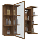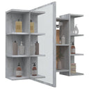Dieser Spiegelschrank verleiht deinem Badezimmer einen Hauch von Ästhetik und jedem Raum einen zeitgemäßen Stil! Der Wandspiegelschrank besteht aus Holzwerkstoff und Acryl und ist somit langlebig und stabil. Der Schrank verfügt über 1 Tür und insgesamt 8 Fächer. Die 6 Außenfächer bieten ausreichend Stauraum, während 2 Innenfächer zusätzlichen Platz bieten. In diesen Fächern kannst du problemlos Ihre wichtigen Toilettenartikel und Badeartikel wie Seifen, Shampoo, Zahnpasta usw. unterbringen. Dieser stilvolle und funktionale Schrank sorgt für eine authentische und herausragende Raumgestaltung!
