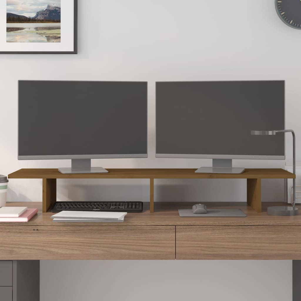 Mit seinem minimalistischen Design verleiht dieser klassische Monitorständer aus Holz deinem Wohnraum eine angenehmen Note. Massives Kiefernholz: Massives Kiefernholz ist ein wunderschönes Naturmaterial. Kiefernholz weist eine gerade Maserung auf und die Aststellen verleihen dem Material seine charakteristische, rustikale Optik.Stabiler Rahmen: Der Holzrahmen sorgt für Robustheit und Stabilität.Stauraum: Unter dem Monitorständer finden Tastatur, DVD-Player, Spielkonsole, Streaming-Geräte, Receiver, Medienträger, Notizbücher, Stifte und ähnliche Gegenstände Platz.Stressreduktion: Dieser Schreibtischaufsatz kann als Ständer für Monitore und andere Multimedia-Geräte verwendet werden. Die Erhöhung deines Bildschirms entlastet Rücken und Nacken bei der Arbeit am PC. Hinweis:Jedes Produkt wird mit einer Montageanleitung in der Verpackung für eine einfache Montage geliefert.