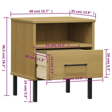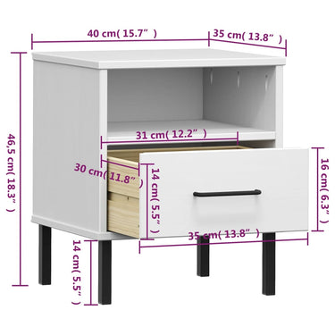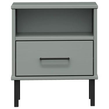 Nachttisch OSLO mit Metallbeinen Grau Massivholz Kiefer