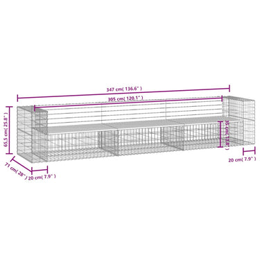 Gartenbank aus Gabionen 347x71x65,5 cm Massivholz Kiefer