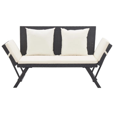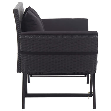 Gartenbank mit Auflagen 176 cm Schwarz Poly Rattan