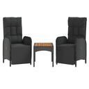 Diese Outdoor-Relaxsessel mit Tisch sind eine perfekte Bereicherung für deinen Garten bzw. deine Terrasse und hinterlassen einen bleibenden Eindruck! Haltbares Material: Poly Rattan ist ein langlebiges Material mit ausgezeichneter Festigkeit, das unterschiedlichen Wetterbedingungen standhält. Es erfordert auch nur wenig Pflege.Praktischer Tisch: Der Gartentisch mit einer Tischplatte aus massivem Akazienholz bietet den perfekten Platz für Getränke, Speisen und Dekorationen. Dieses Möbelstück weist eine ansprechende Optik auf und ist pflegeleicht.Liegefunktion: Diese Gartensessel sind mit Liegefunktion ausgestattet, sodass du Rückenlehne und Fußstütze je nach Belieben einstellen kannst.Bequemes Sitzerlebnis: Für deinen Komfort sind zusätzliche Kissen im Lieferumfang enthalten. Zudem können Sitz- und Rückenkissen über Reißverschluss miteinander verbunden werden. Hinweis:Um die Lebensdauer deiner Gartenmöbel zu verlängern, empfehlen wir dir, sie mit einer wasserdichten Hülle zu schützen.Jedes Produkt wird mit einer Montageanleitung in der Verpackung für einen einfachen Zusammenbau geliefert.