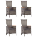 Schaffen Sie mit dieser Garten-Essgruppe eine überzeugende und zusammenhängende Ästhetik in Ihrem Außenbereich! Der Esstisch besteht aus massivem Akazienholz mit Ölfinish, was ihn stabil, langlebig und pflegeleicht macht. Die Esszimmerstühle verfügen über pulverbeschichtete Stahlrahmen, die mit witterungsbeständigem PE-Rattan überzogen sind, und sind daher robust und leicht zu reinigen. Die Liegestühle bieten Ihnen den nötigen Komfort. Die Rückenlehne lässt sich durch Ziehen am seitlichen Knopf verstellen. Dank ihrer Leichtbauweise sind die Gartenmöbel leicht zu umstellen. Die Gartenstühle sind auch mit sehr bequemen, dick gepolsterten Sitzkissen für ultimativen Komfort geliefert. Deren pflegeleichte Bezüge aus Polyester können leicht abgenommen und gewaschen werden. Wichtiger Hinweis: Wir empfehlen, die Essgruppe bei Regen, Schnee und Frost für eine lange Lebensdauer abzudecken.