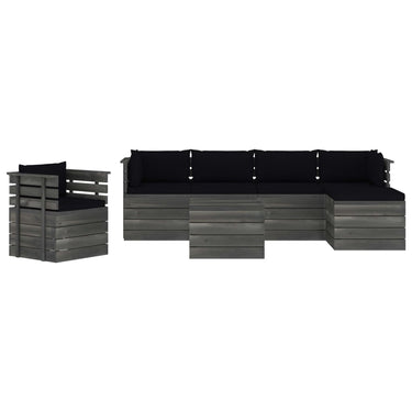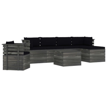 7-tlg. Garten-Sofagarnitur aus Paletten Kiefernholz Dunkelgrau
