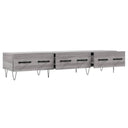 Dieser robuste TV-Schrank wird mit seinem trendigen und dennoch praktischen Design sicherlich der Mittelpunkt Ihres Wohnzimmers werden. Robustes Material: Holzwerkstoff ist ein Material von außergewöhnlicher Qualität mit glatter Oberfläche, das sich durch Festigkeit, Stabilität und Feuchtigkeitsbeständigkeit auszeichnet. Aus Holzwerkstoff gefertigt, lässt sich der TV-Ständer leicht reinigen.Viel Stauraum: Das TV-Möbel verfügt über 3 Schubladen, die es zum idealen Ort für die Aufbewahrung all deiner Zeitschriften, DVDs und anderer Gegenstände machen.Präsentation: Die stabile Oberplatte des Medienschranks bietet den idealen Platz, um Dekoartikel wie Bilderrahmen und Pflanzen zur Schau zu stellen.Eisenbeine: Die Eisenbeine verleihen deiner Einrichtung eine angenehme Note und sorgen gleichzeitig für Stabilität.