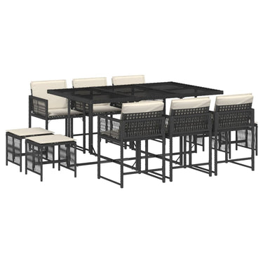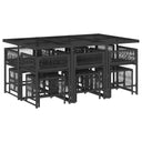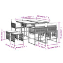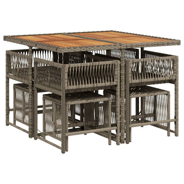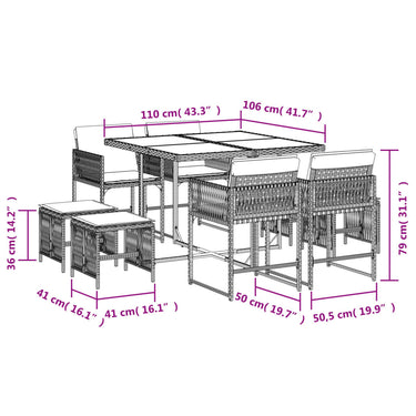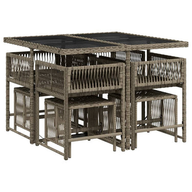 Diese Garten-Essgruppe ist eine ideale Wahl für Mahlzeiten im Freien oder einfach nur zum Entspannen im Garten, Hinterhof oder auf der Terrasse. Langlebiges Material: PE-Rattan, auch als Poly Rattan bekannt, ist ein robustes, pflegeleichtes synthetisches Material, das die Optik von natürlichem Rattan aufweist. Es kennzeichnet sich durch ein geringes Eigengewicht und lässt sich einfach reinigen. Aufgrund seiner Haltbarkeit und Witterungsbeständigkeit wird es häufig bei der Herstellung von Gartenmöbeln verwendet.Platzsparende Aufbewahrung: Dank der klappbaren Rückenlehne lassen sich die Stühle unter dem Tisch verstauen. Zudem finden auch die Hocker Platz unter den Stühlen, sodass die gesamte Essgruppe bei Nichtgebrauch eine platzsparende Würfelform bildet, um deinen verfügbaren Platz optimal auszunutzen.Bequemes Sitzerlebnis: Dieser Gartensessel mit dick gepolsterten Kissen bietet ein angenehmes Sitzgefühl.Abnehmbarer und waschbarer Bezug: Die Sitzkissen verfügen über abnehmbare Bezüge, die sich ganz einfach waschen und reinigen lassen. Dank der Klappen an der Rückseite können die Kissen ganz einfach an den Rückenlehnen befestigt werden.Tischplatte aus Glas: Die Tischplatte des Gartentisches besteht aus starkem und langlebigem Hartglas, sodass sie leicht mit einem feuchten Tuch gereinigt werden kann und deinem Außenbereich einen Hauch von Eleganz verleiht. Gut zu wissen:Wir empfehlen dir, deine Gartenmöbel mit einer wasserdichten Hülle zu schützen, um lange Zeit eine ansprechende Optik aufzuweisen.
