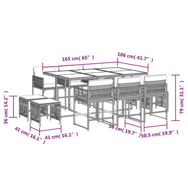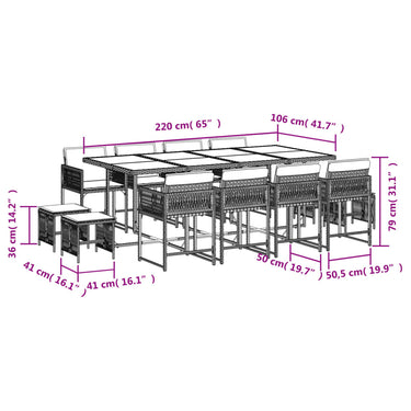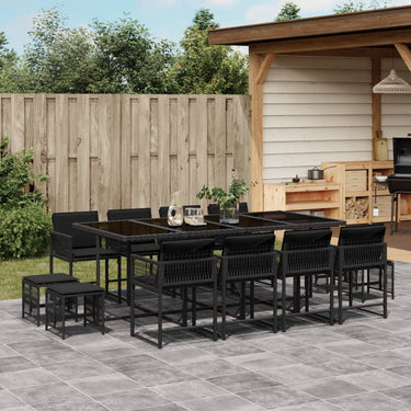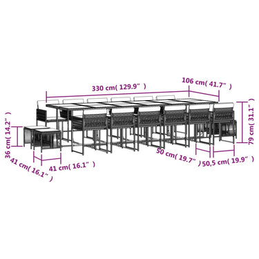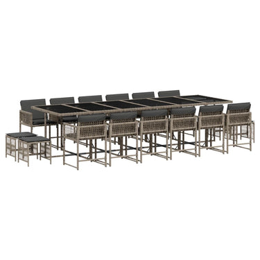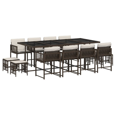 17-tlg. Garten-Essgruppe mit Kissen Braun Poly Rattan