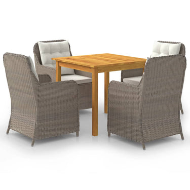 Schaffen Sie mit dieser Garten-Essgruppe eine überzeugende und zusammenhängende Ästhetik in Ihrem Außenbereich! Der Esstisch besteht aus massivem Akazienholz mit einem Öl-Finish, die ihn stabil, langlebig und pflegeleicht macht. Diese Stühle sind robust und einfach zu reinigen, dank einem witterungsbeständigen und pulverbeschichteten Stahlrahmen, der mit witterungsbeständigem PE- Rattan überzogen ist. Die ergonomische Form und die dick gepolsterten Kissen bieten den ultimativen Sitzkomfort. Die wartungsarmen Polyesterkissenbezüge können leicht entfernt und gewaschen werden. Wichtiger Hinweis: Wir empfehlen, die Essgruppe bei Regen, Schnee und Frost für eine lange Lebensdauer abzudecken.