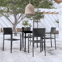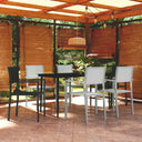 Diese Garten-Essgruppe ist eine perfekte Kombination aus Stil und Funktionalität und wird der Mittelpunkt Ihres Gartens, Balkons oder Ihrer Terrasse sein. Mit pulverbeschichteten Stahlrahmen versehen, ist dieses Terrassenmöbel-Set robust, stabil und für den täglichen Einsatz im Außenbereich geeignet. Die glatte Tischplatte aus Glas lässt sich leicht mit einem feuchten Tuch reinigen und bietet den perfekten Platz für Speisen, Getränke und andere Dekorationsgegenstände. Die leichten Gartenstühle sind aus Kunststoff gefertigt, wodurch sie sich leicht reinigen und umstellen lassen. Mit ihrem Rattan-Look verleihen die Essstühle Ihrem Außenbereich einen Hauch von natürlichem Charme! Hinweis: Um die Lebensdauer deiner Gartenmöbel zu verlängern, empfehlen wir dir, sie mit einer wasserdichten Abdeckung zu schützen.