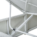 Schaffen Sie mit dieser stilvollen Sonnenliege und dem Teetisch einen auffälligen und entspannenden Loungebereich, von dem Sie schon immer geträumt haben. Auf dieser Sonnenliege können Sie einen entspannten, sonnigen Nachmittag mit Ihrem Freund genießen! Diese Chaiselongue aus wetterbeständigem PE-Rattan ist leicht zu reinigen, strapazierfähig und für den täglichen Gebrauch geeignet. Es verfügt über einen stabilen pulverbeschichteten Stahlrahmen, wodurch diese Sonnenliege besonders stabil und langlebig ist. Beide Seiten des Bettes können hochgezogen und in unterschiedlichen Einstellungen für die bequemsten Sitz- oder Liegepositionen eingestellt werden. Die dick gepolsterte Auflage bietet ultimativen Komfort und zusätzlichen Halt. Der Bezug ist zum einfachen Waschen abnehmbar. Auf dem mitgelieferten Beistelltisch können Sie sogar Ihre Getränke, Telefone, Bücher oder andere Kleinigkeiten in Reichweite halten. Hinweis: Wir empfehlen, die Sonnenliege und den Tisch bei Regen, Schnee und Frost abzudecken.
