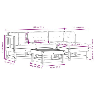 5-tlg. Garten-Lounge-Set mit Kissen Weiß Massivholz