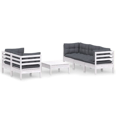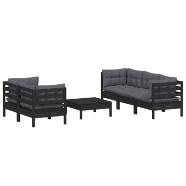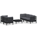 6-tlg. Garten-Lounge-Set mit Anthrazit Kissen Kiefernholz