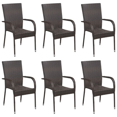 Schaffen Sie mit dieser Garten-Essgruppe eine überzeugende und zusammenhängende Ästhetik in Ihrem Außenbereich! Der Gartentisch ist aus massivem Akazienholz gefertigt, was ihn robust und stabil macht. Durch die geölte Oberfläche lässt sich der Tisch zudem leicht mit einem feuchten Tuch reinigen. Mit einem Stahlrahmen, der mit witterungsbeständigem PE-Rattan bespannt ist, sind die Esszimmerstühle robust und leicht zu reinigen. Die Gartenstühle können bei Nichtgebrauch platzsparend gestapelt werden. Hinweis: Um die Lebensdauer Ihrer Gartenmöbel zu verlängern, empfehlen wir Ihnen, diese regelmäßig zu reinigen und bei Nichtgebrauch im Freien abzudecken.Reinigung: Verwenden Sie eine milde Seifenlösung.Lagerung: Wenn möglich, an einem kühlen, trockenen Ort im Innenbereich lagern. Wenn das Produkt im Freien gelagert wird, schützen Sie es mit einer wasserdichten Abdeckung. Wischen und trocknen Sie das überschüssige Wasser oder den Schnee nach Regen oder Schneefall von der ebenen Fläche. Sorgen Sie für eine ausreichende Luftzirkulation, um feuchtigkeitsbedingte Schäden zu vermeiden.