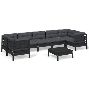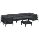 8-tlg. Garten-Lounge-Set mit Kissen Schwarz Kiefernholz