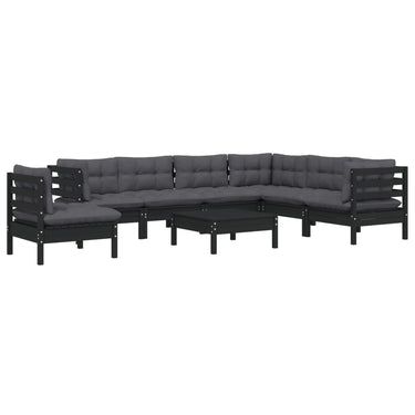 8-tlg. Garten-Lounge-Set mit Kissen Schwarz Massivholz Kiefer