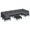 8-tlg. Garten-Lounge-Set mit Kissen Schwarz Massivholz Kiefer