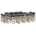 9-tlg. Garten-Essgruppe mit Kissen Hellgrau Poly Rattan