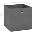 Diese stilvollen Faltboxen mit Deckeln passen perfekt in fast jedes Regal. Diese Aufbewahrungsboxen sind aus Vliesstoff gefertigt und daher sehr langlebig. Jede Box bietet reichlich Platz für Schals, Socken, Unterwäsche usw. Bei Nichtgebrauch können die Aufbewahrungsboxen platzsparend zusammengeklappt werden. Jede Faltbox verfügt über eine praktische Metallöse, die ihr eine elegante Note verleiht. So lässt sie sich auch einfach aus dem Kleiderschrank herausziehen. Darüber hinaus halten die mitgelieferten Deckel deine Sachen sauber und staubfrei.