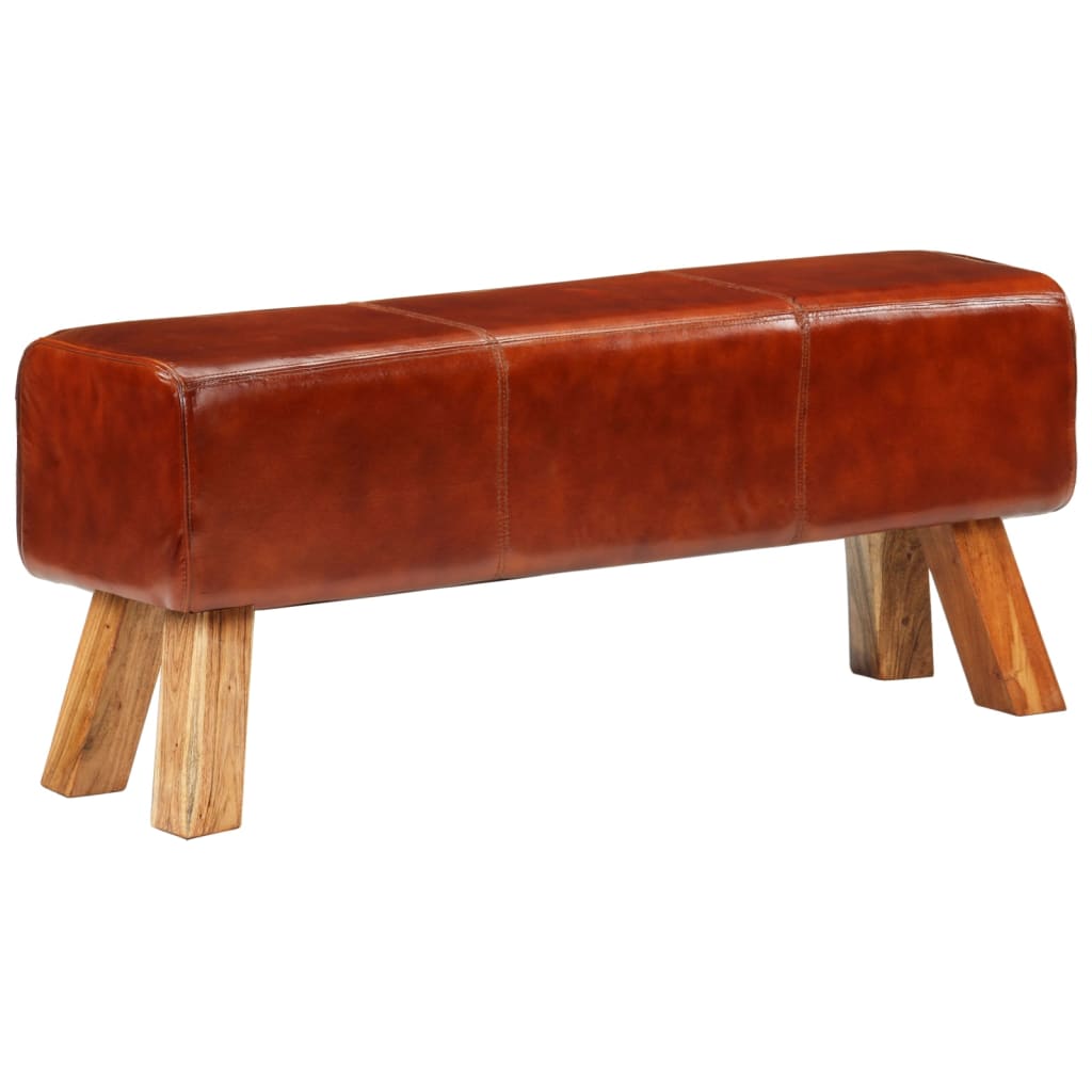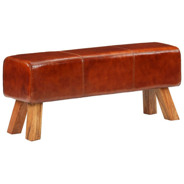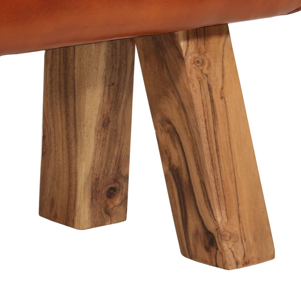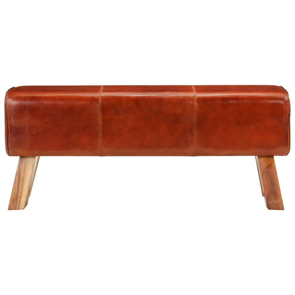 Sitzbank Turnbock-Design 58cm Braun Echtleder Mango Massivholz