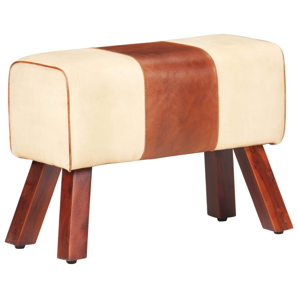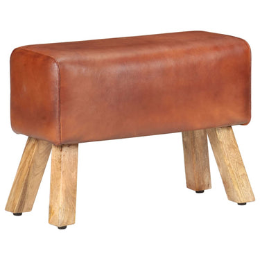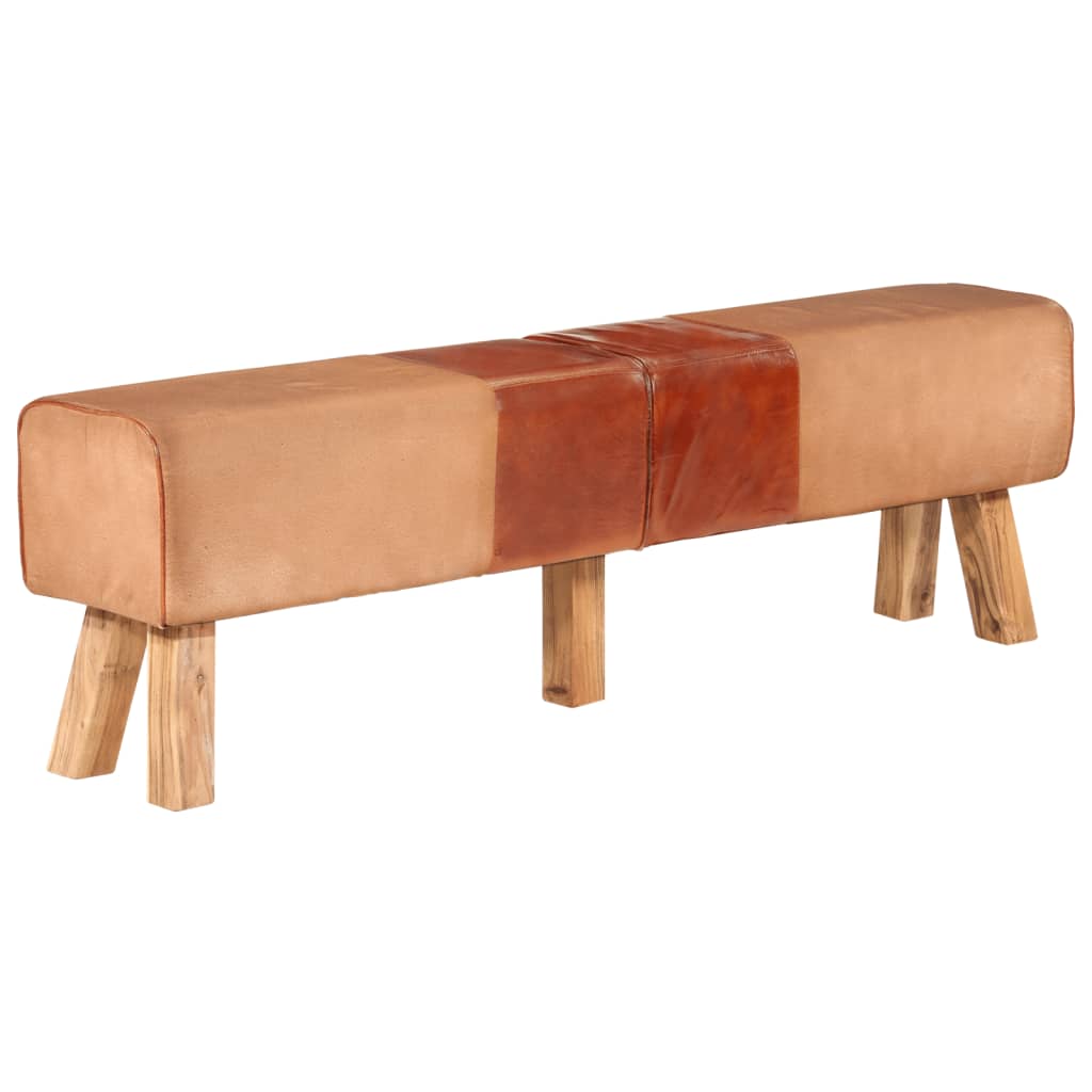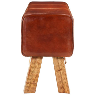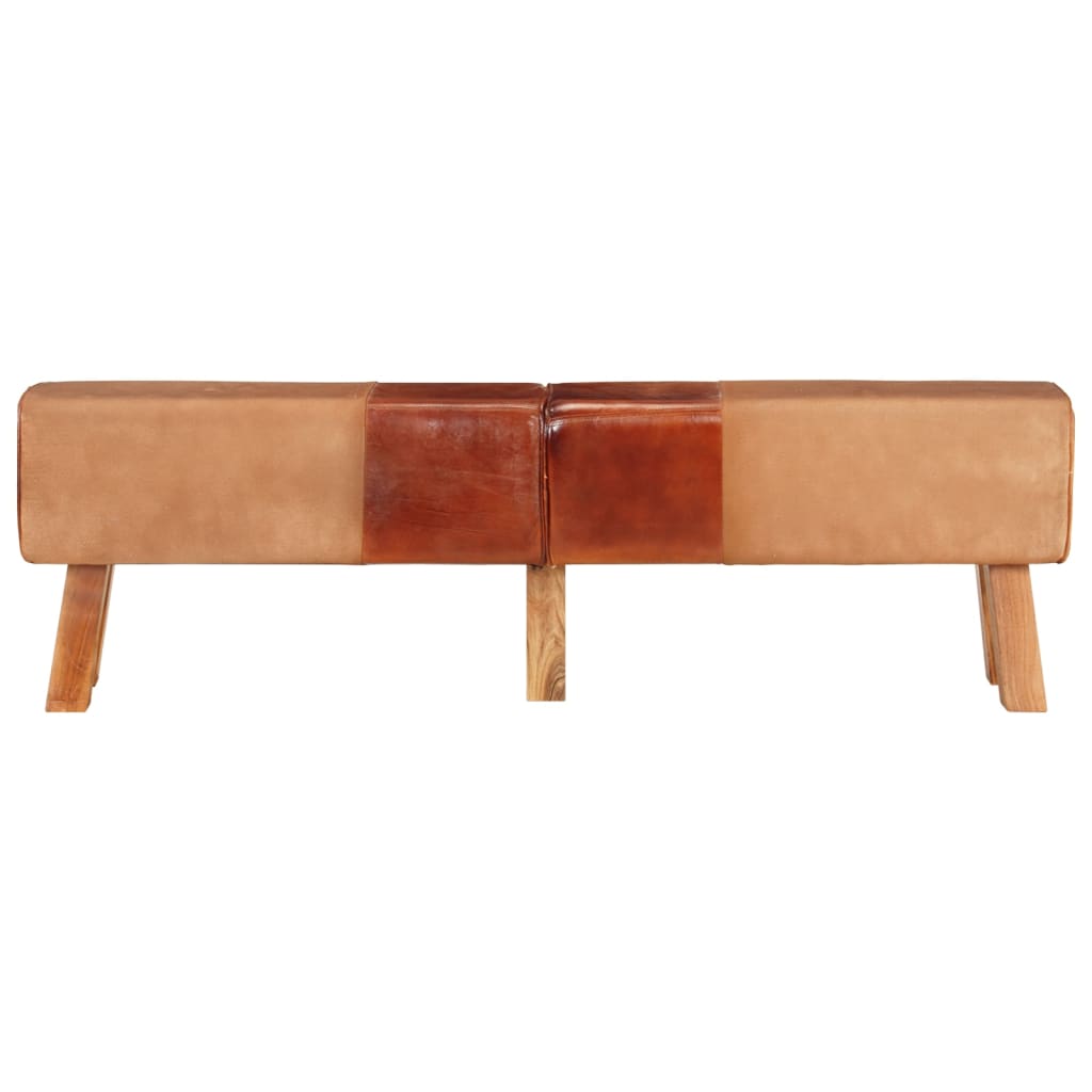 Sitzbank Turnbock-Design 58cm Braun Echtleder Mango Massivholz