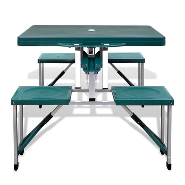Dieses Camping-Set besteht aus 1 Tisch und 4 Hockern. Durch den praktischen Tragegriff und das Klappdesign eignet es sich perfekt für den Einsatz in der Küche, auf der Terrasse, im Garten, auf Picknicks sowie Campingausflügen. Das Camping-Set überzeugt durch ein geringes Eigengewicht. Dank des praktischen Tragegriffes lässt sich der Tisch mühelos auf Picknicks oder Campingausflügen mitnehmen. Dank der robusten Struktur beträgt die maximale Belastbarkeit des Campingtisches 30 kg. Das Gestell besteht aus PP, während die Tischplatte und die Sitzflächen aus PP gefertigt sind. Daher ist das Set sehr stabil und haltbar. Der Tisch ist mit einem Sonnenschirmloch versehen, um das Anbringen eines Sonnenschirms zu ermöglichen und angenehmen Schatten zu genießen. Der Tisch und die Hocker lassen sich einfach zusammenklappen, um den Transport und die Lagerung zu erleichtern.