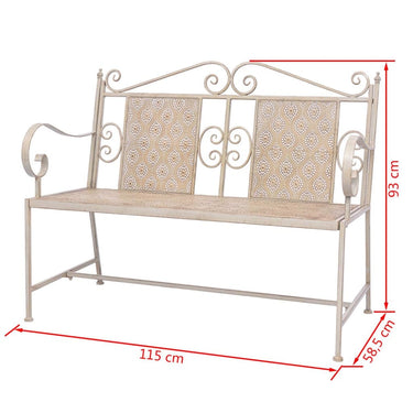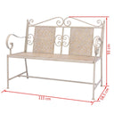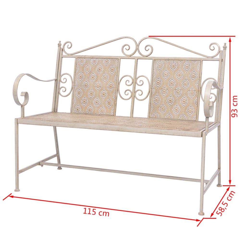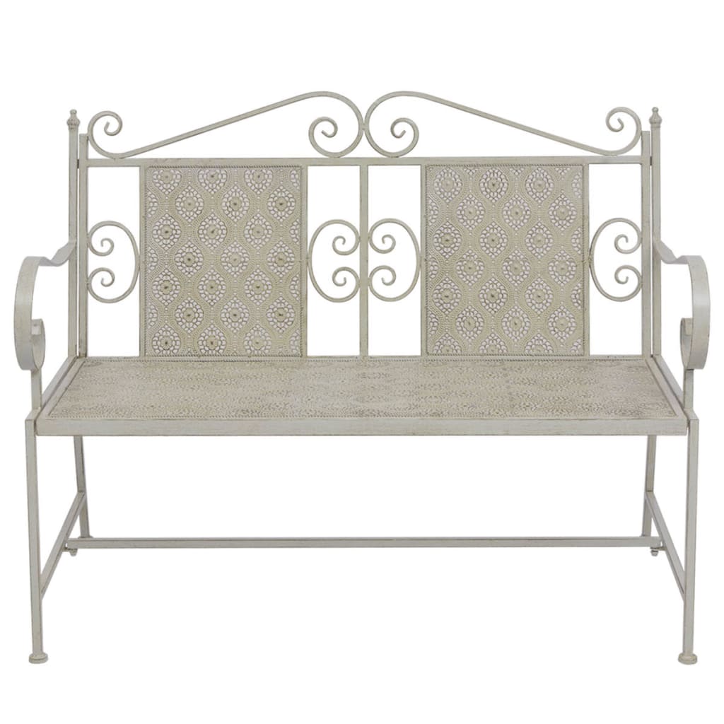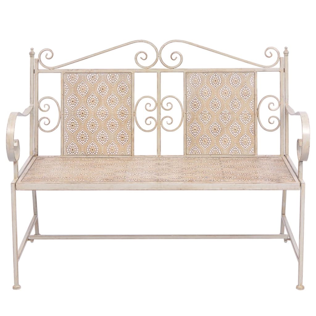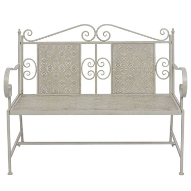 Diese Outdoor-Bank im Vintage-Stil wertet jeden Garten bzw. jede Terrasse mit ihren schönen Verzierungen und ihrer romantischen Eleganz auf. Die Sitzbank ist aus hochwertigem pulverbeschichtetem Stahl gefertigt, wodurch sie witterungsbeständig und äußerst langlebig ist. Die ausgefallenen handbemalten Verzierungen und die die Rost-Optik verleihen jedem Outdoor-Bereich einen eleganten Look. Diese Gartenbank ist für 2 Personen geeignet.