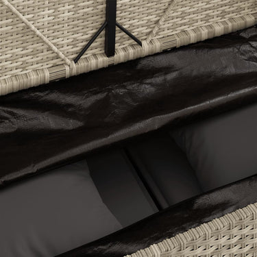 Diese Gartenbank bietet nicht nur eine bequeme Sitzgelegenheit im Außenbereich, sondern eignet sich auch perfekt, um Gartenkissen, Gartengeräte, Handtücher und andere Gegenstände ordentlich und griffbereit aufzubewahren. Langlebiges Material: PE-Rattan, auch als Poly Rattan bekannt, ist ein robustes, pflegeleichtes synthetisches Material, das die Optik von natürlichem Rattan aufweist. Es kennzeichnet sich durch ein geringes Eigengewicht und lässt sich einfach reinigen. Aufgrund seiner Haltbarkeit und Witterungsbeständigkeit wird es häufig bei der Herstellung von Gartenmöbeln verwendet.Stauraum mit wasserfestem Beutel: Das Gartensofa verfügen über ein Staufach unter der Sitzfläche, das mit einem wasserfesten Beutel zur Aufbewahrung von Kissen, Spielzeug und anderen Gegenständen versehen ist. Der Innenbeutel lässt sich mit Klettverschlüssen sicher und stabil an den Gartenmöbeln befestigen.Bequemes Sitzerlebnis: Dank des dick gepolsterten Kissens bietet dieser Gartenhocker höchsten Sitzkomfort.Sicheres und einfaches Öffnen und Schließen: Die Gasfeder erleichtert das Öffnen des Deckels und verhindert das Einklemmen der Finger.Abnehmbarer und waschbarer Bezug: Diese Sitzkissen verfügen über abnehmbare Bezüge für einfaches Waschen und Pflegen. Gut zu wissen:Wir empfehlen dir, deine Gartenmöbel mit einer wasserdichten Hülle zu schützen, um lange Zeit eine ansprechende Optik aufzuweisen.