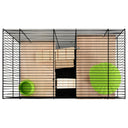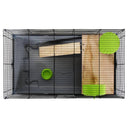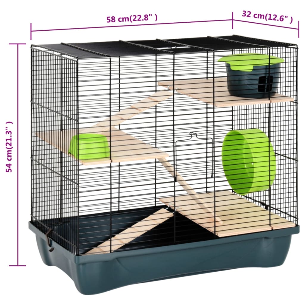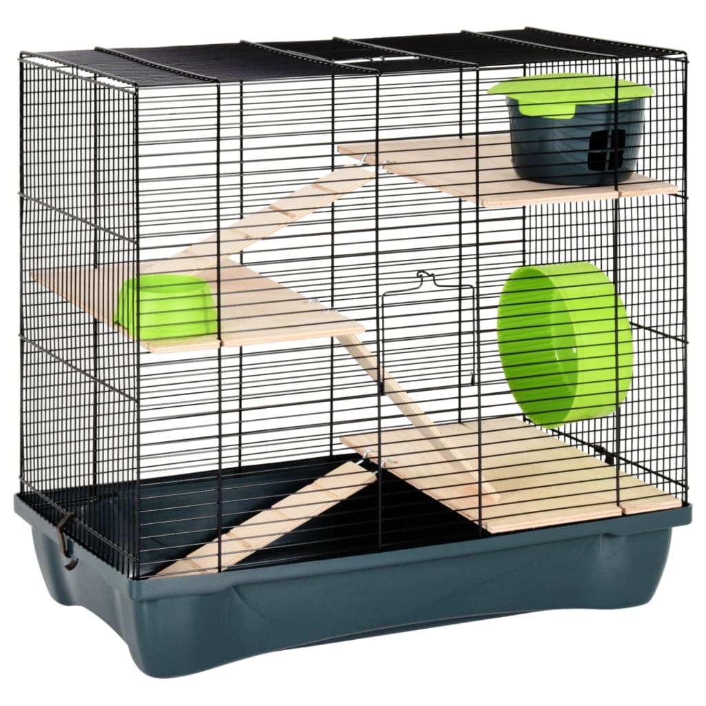 Dieser Hamsterkäfig bietet deinem Haustier einen privaten und sicheren Schlaf- und Spielplatz! Zudem werden sich deine Haustiere dank des mitgelieferten Zubehör nie langweilen. Langlebiges PP: Polypropylen (PP) ist ein beliebter Kunststoff, der häufig bei der Herstellung von Gartenmöbeln verwendet wird. Dieses Material ist leicht, robust und stoßfest.Belüftetes Design: Der Nagetierkäfig besitzt einen oberen Drahtrahmen, der für eine gute Belüftung sorgt, um saubere und frische Luft zu bieten, was sich positiv auf die Gesundheit deiner Haustiere auswirkt.Mehrere Etagen: Die mehreren Etagen fordern dein Haustier zur Bewegung auf. Die Holzleiter ermöglicht einen einfachen Zugang zu den einzelnen Wohnbereichen.Umfangreiches Zubehör: Dieser Mäusekäfig wird mit 1 Laufrad, 1 Oberhaus, 1 Leiter und 1 Bodenwanne geliefert. Durch dieses Zubehör bietet der Nagerkäfig deinem Haustier ein ideales Habitat.Zusätzliche Sicherheit: Die doppelte Verriegelung bietet deinen Haustieren zusätzliche Sicherheit und Schutz.