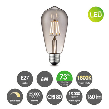 Home Sweet Home dimbare Led Drop E27 ST64 6W 160Lm 1800K Helder