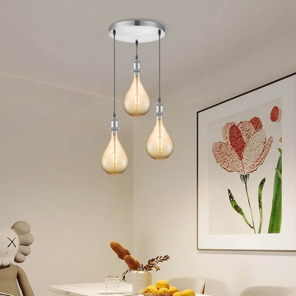Home Sweet Home hanglamp chroom rond Pear 3L G160 dimbaar E27 amber