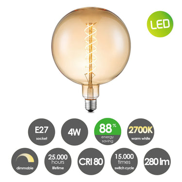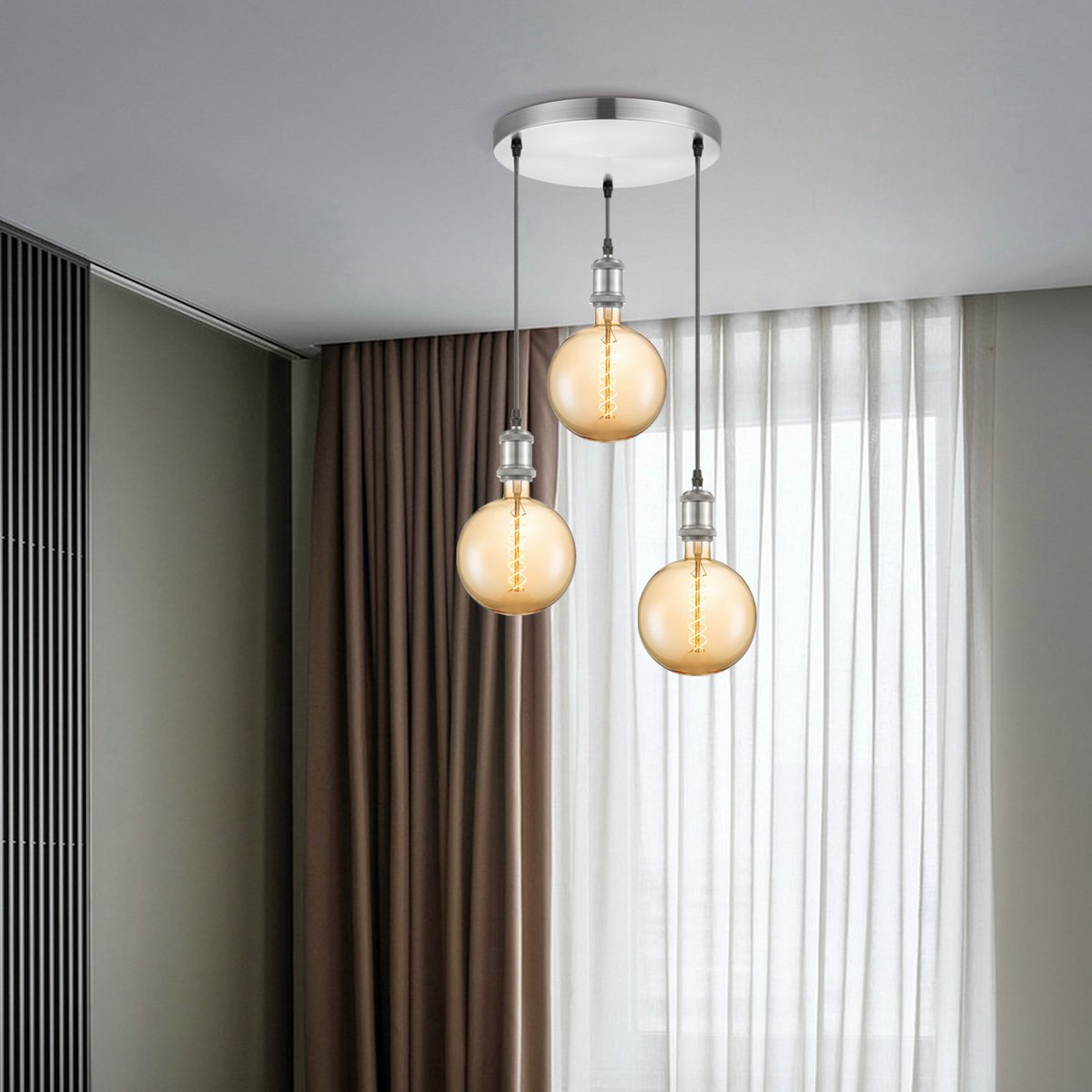 Home Sweet Home hanglamp chroom vintage rond 3 LED -dimbaar E27 amber