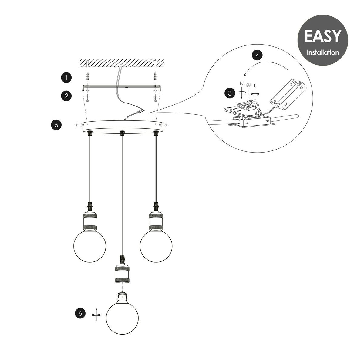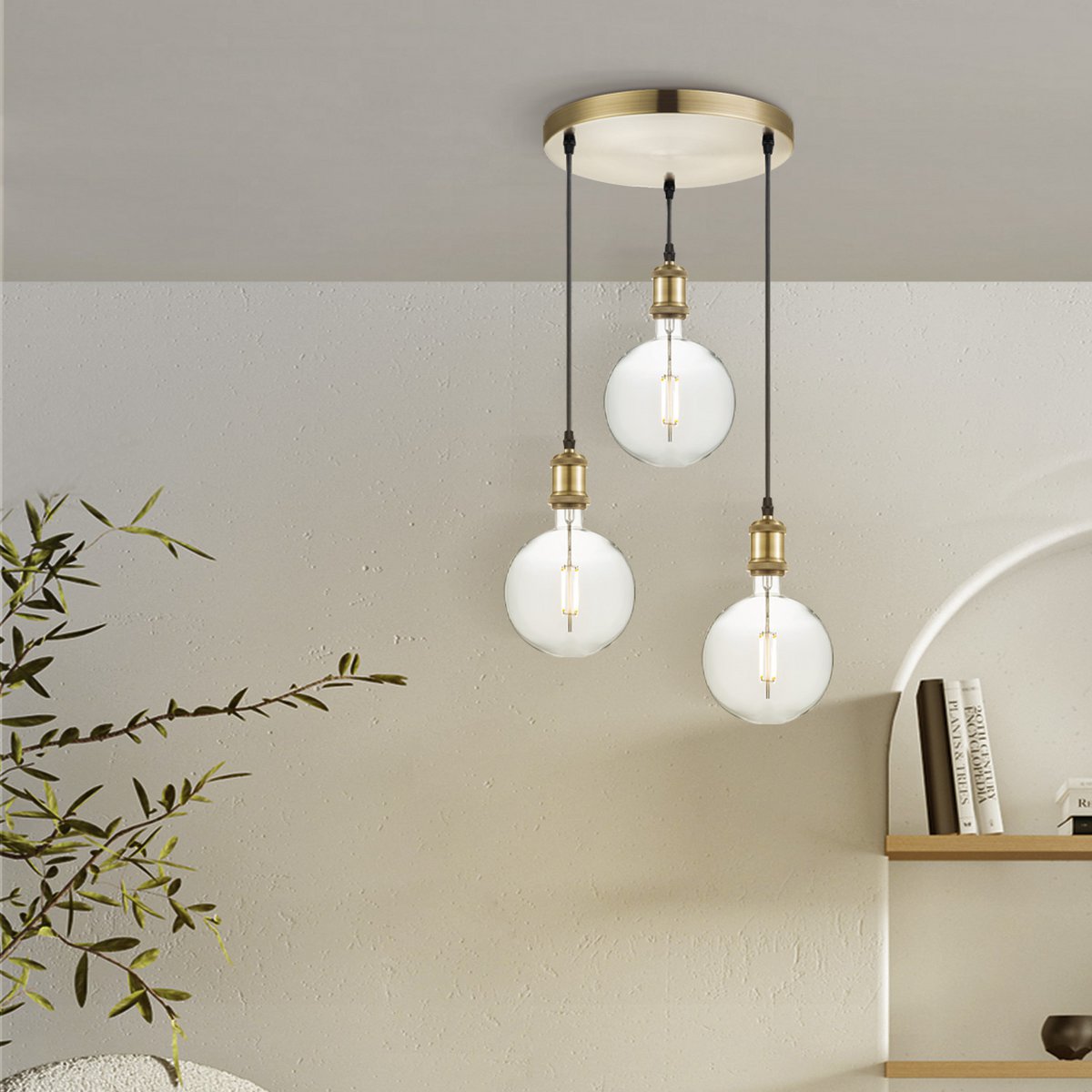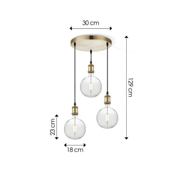 Home Sweet Home hanglamp vintage rond Globe 3L G125 dimbaar E27 helder