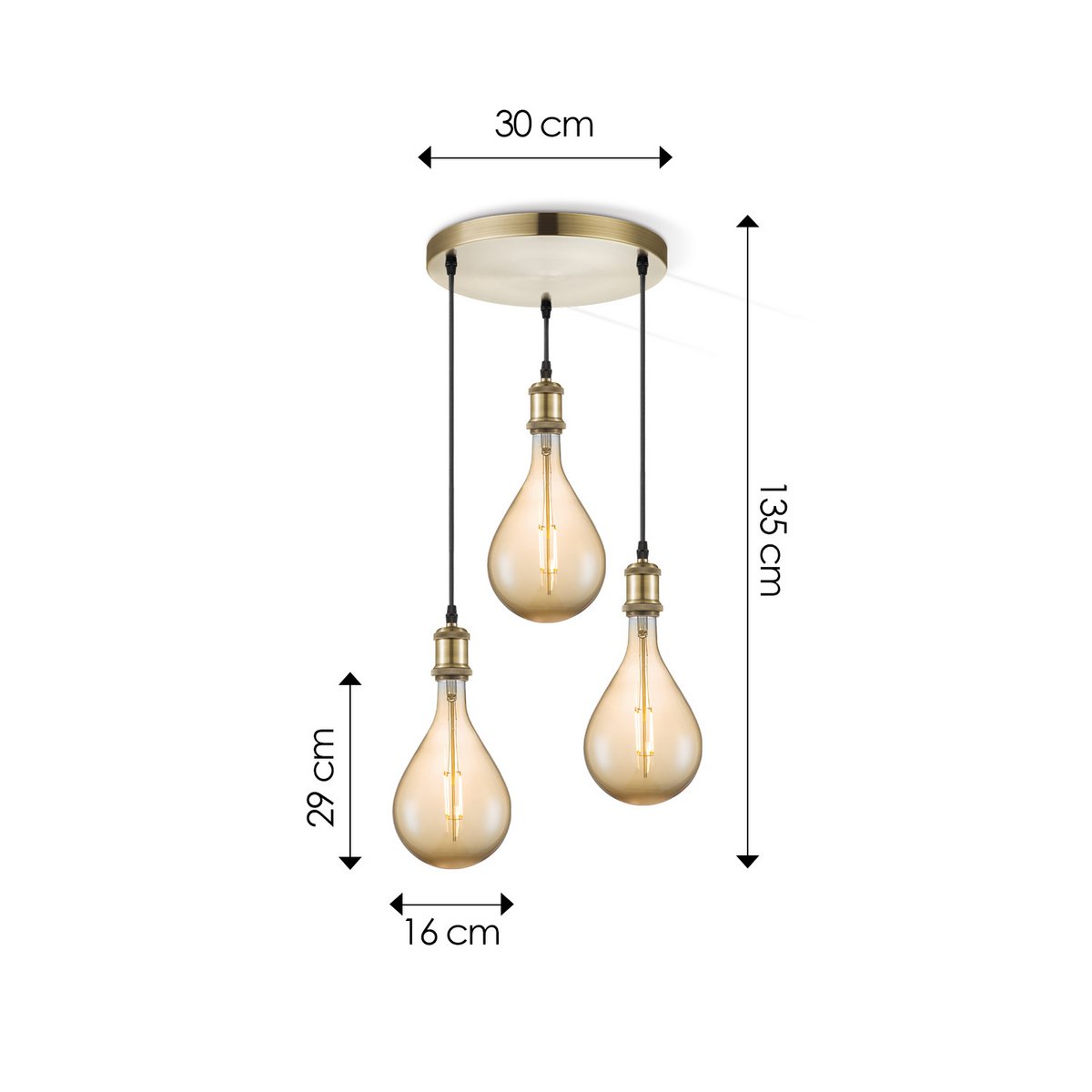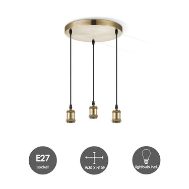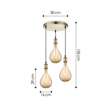 Home Sweet Home hanglamp vintage rond Pear 3L G160 dimbaar E27 amber