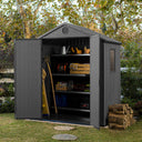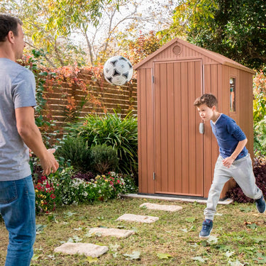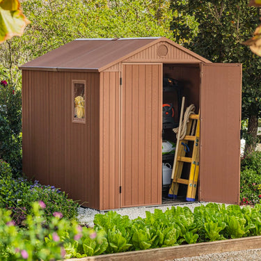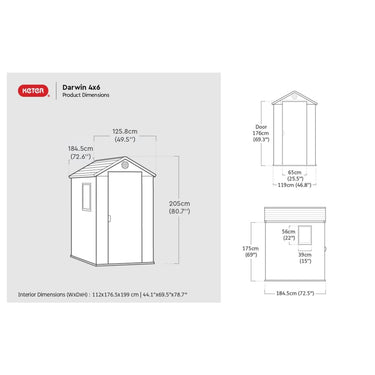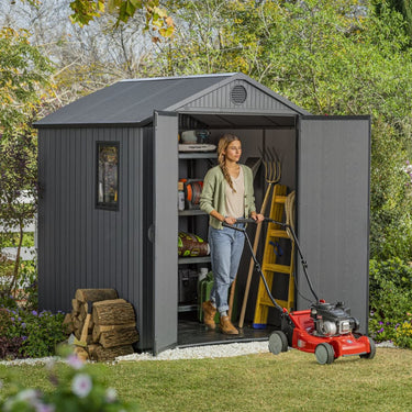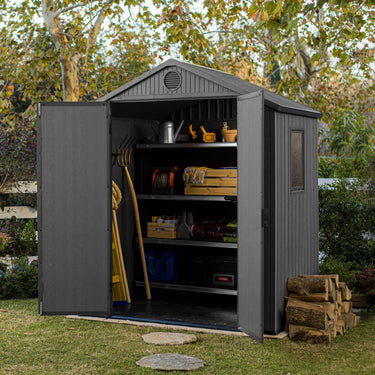 Du hast zu wenig Stauraum in deinem Garten und möchtest das Problem schnell und kostengünstig lösen? Dann ist der Darwin 46 Geräteschuppen von Keter die ideale Lösung. Das Gerätehaus bietet viel Platz für die Aufbewahrung von Fahrrädern, Werkzeugen und/oder Gartenmöbeln. Die 16 mm dicke Doppelwand in Holz-Optik bietet dir die Vorteile von UV- und witterungsbeständigem Kunststoff. Die Bodenplatten und die integrierte Belüftung sorgen für eine gute Belüftung des Innenraums und schützen deine Sachen vor Feuchtigkeit. Dieser Geräteschuppen ist mit einem Fenster für mehr Licht ausgestattet. Außerdem ist jedes Darwin 46 Gerätehaus einfach und ohne Spezialwerkzeug zu montieren.