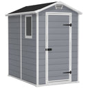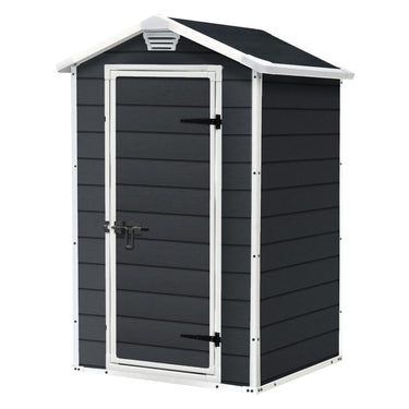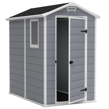 Der Manor 46 Geräteschuppen von Keter ist eine ideale und wartungsarme Aufbewahrungslösung im Garten. Der doppelwandige Lagerschuppen ist aus witterungsbeständigem Polypropylen gefertigt, wodurch er extrem langlebig und witterungsbeständig ist. Die Bodenplatte hält die gelagerten Gegenstände sauber und trocken. Der Manor 46 ist belüftet, abschließbar und als Aufbewahrungslösung auf engstem Raum konzipiert, zum Beispiel zwischen Haus und Gartenzaun. Es hat ein festes Fenster, das natürliches Licht hereinlässt. Die Montage ist einfach und erfordert nur Haushaltswerkzeuge.