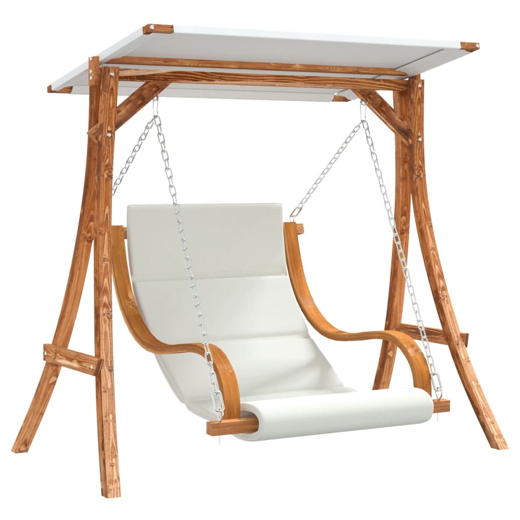 Deze houten schommelstoel met luifel is de perfecte keuze als je wat ontspanning en plezier wilt toevoegen aan je buitenruimte.